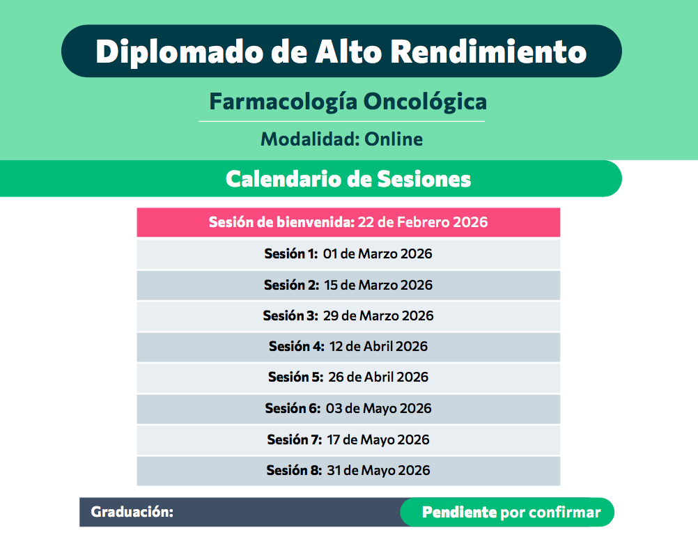 Este diplomado está diseñado para profesionales que buscan ir más allá de la prescripción, para comprender en profundidad la acción, interacción y gestión de los fármacos oncológicos. Formamos expertos capaces de integrar el conocimiento científico actual con un compromiso con la seguridad, la ética y la personalización del cuidado, maximizando los beneficios y minimizando los riesgos para cada paciente. 8 Módulos: Sesiones quincenales de 9:00 am – 1 pm (Hora de la Ciudad de México)